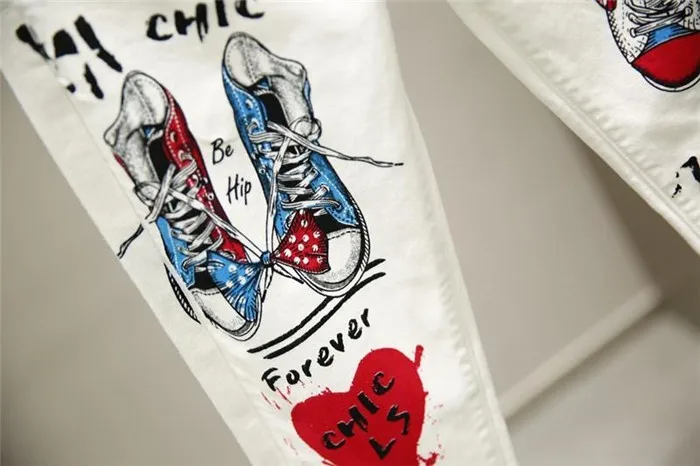 Женские белые джинсы-карандаш, Осенние обтягивающие джинсы в стиле граффити с цветочным принтом, модель LU1271