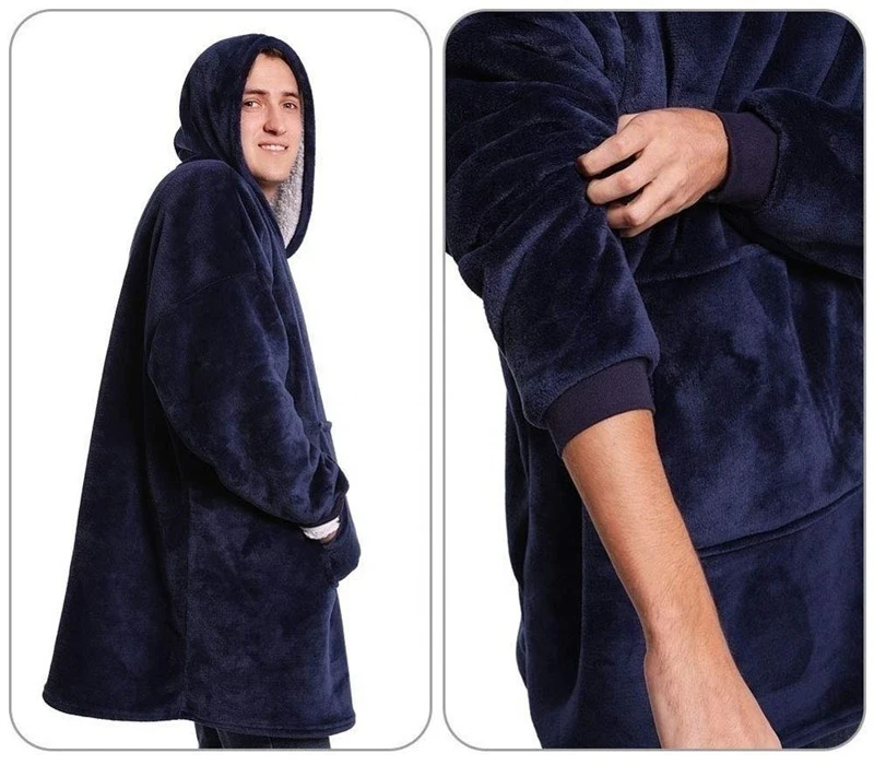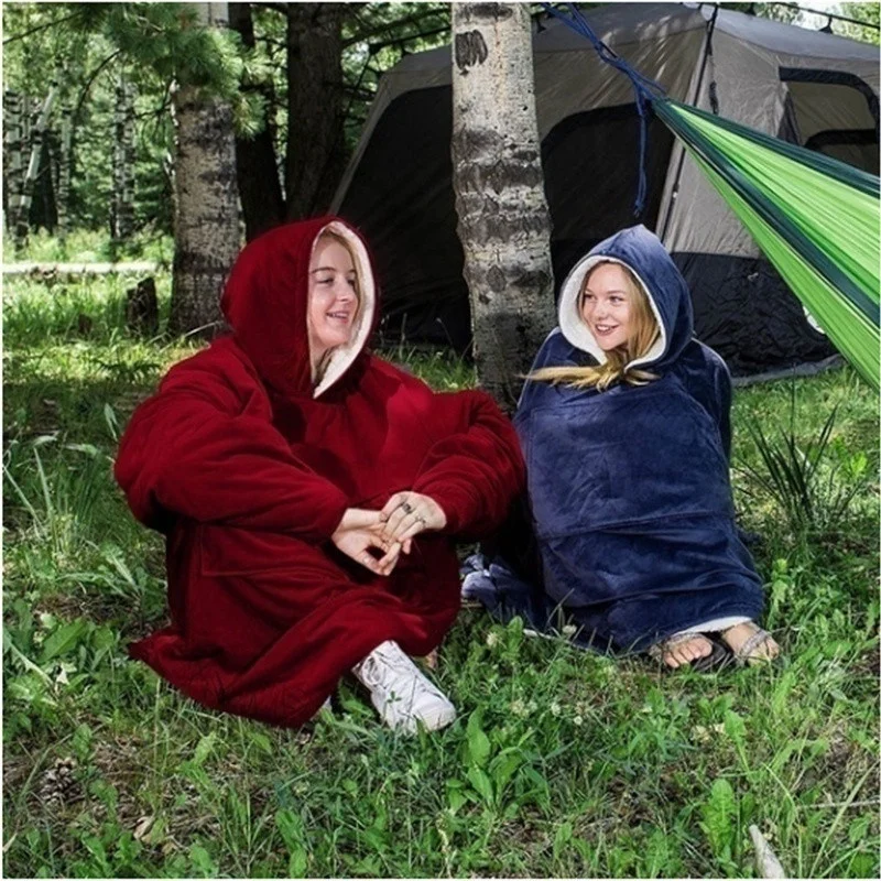 Одеяло с капюшоном для мужчин и женщин, зимняя теплая флисовая кофт...