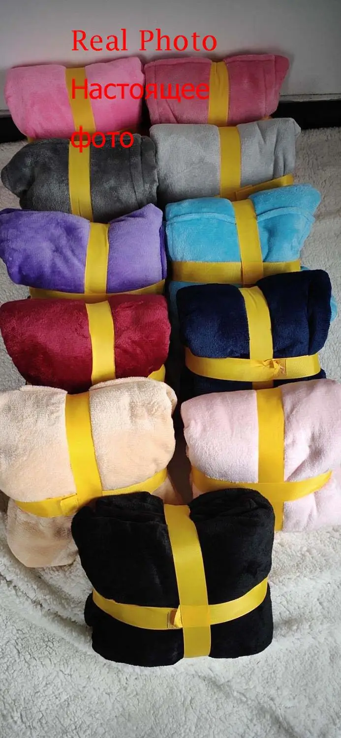 Зимнее плотное удобное одеяло, толстовка, однотонное теплое одеяло ...