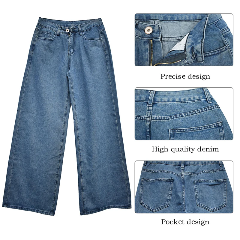Женские джинсы с высокой талией, джинсовая одежда с широкими штанин...
