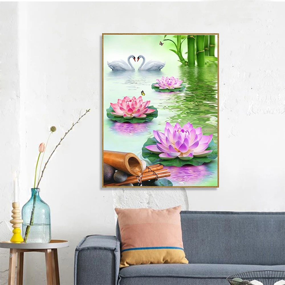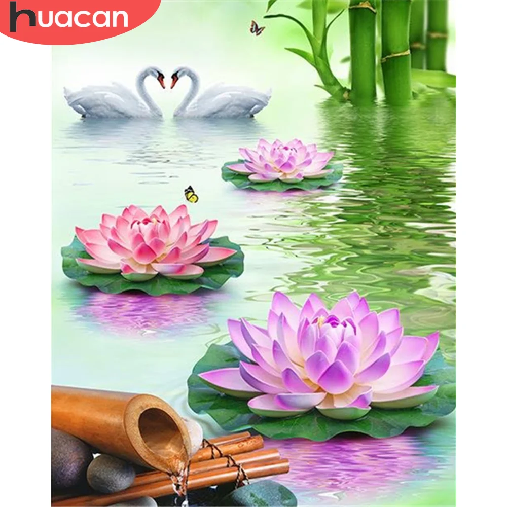 HUACAN краска по номеру Лебедь животные рисование на холсте стены искусства ручная краска ed DIY окраска по номеру Лотос украшение дома