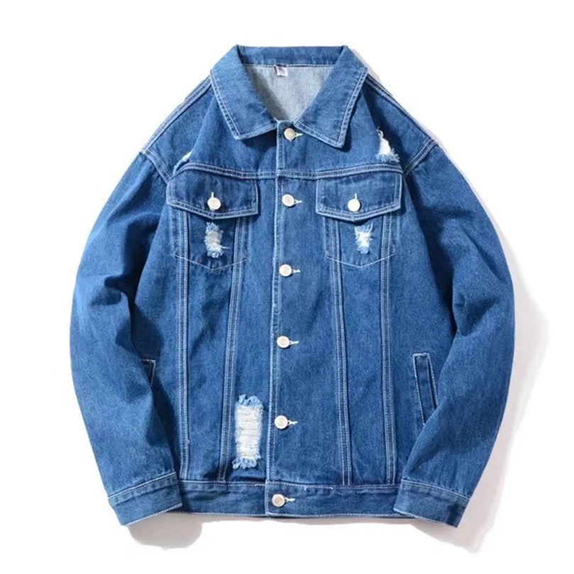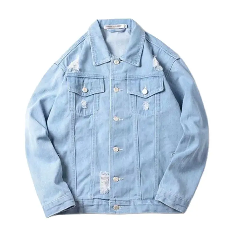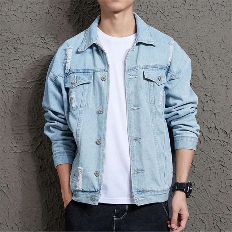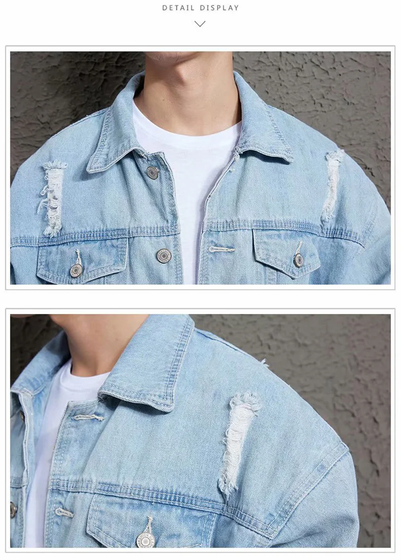2022 Модные мужские джинсовые куртки, приталенные мужские джинсовые куртки, хлопковая верхняя одежда, пальто с длинными рукавами и дырками, мужская повседневная одежда
