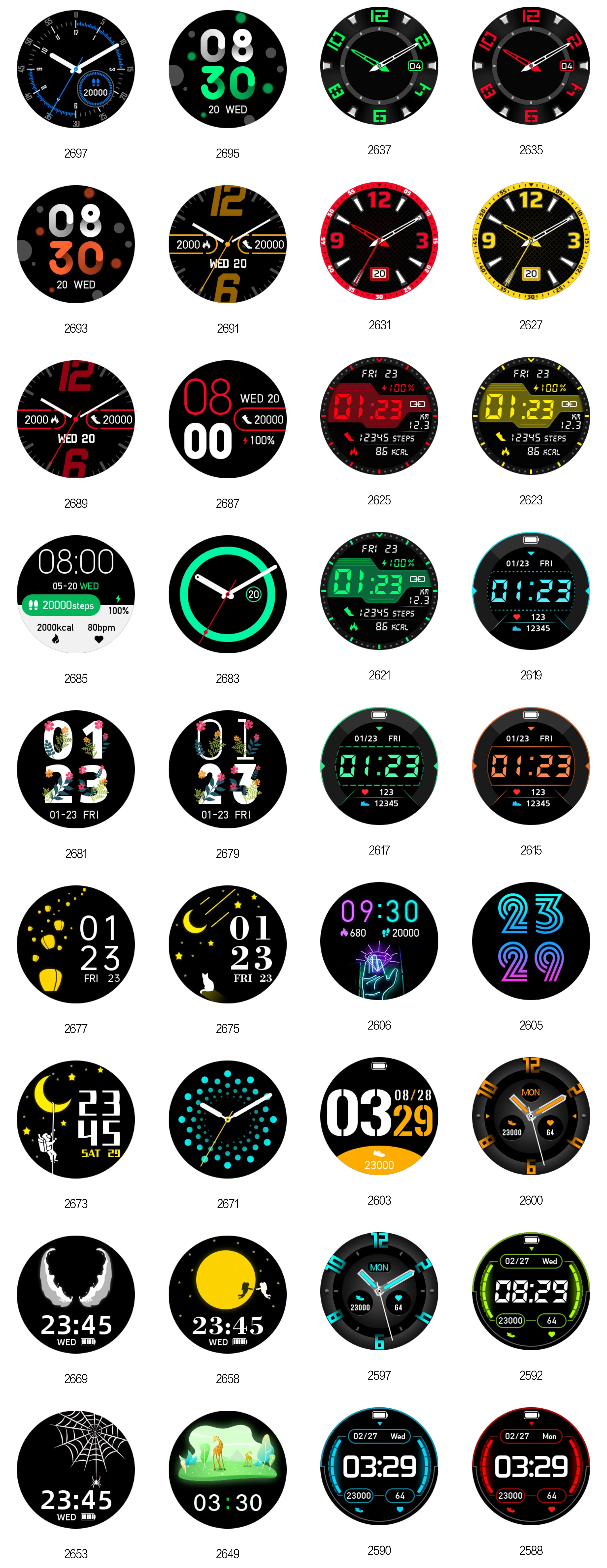 Следующие циферблаты можно переключать в приложении.