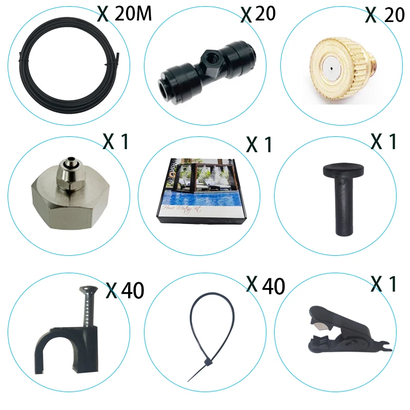 【Обновление качества: обновленная насадка для системы тумана изготовлена из точной латуни, легко подключается, герметичный и самоуплотняющийся Тройник, Высококачественная обработанная гибкая трубка【Широкое применение 】: система охлаждения с запотеванием широко применяется для сада, ландшафтного дизайна, теплицы, увлажнения, наружной системы охлаждения, запотевания бассейна и т. д.【Простая установка DIY: предоставление вам всех аксессуаров, которые вам нужны для воздушного охлаждения и системы запотевания растений, всего 10 минут для установки в соответствии с вашей идеей, обеспечивает очень тонкий туман, чтобы значительно охладить воздух в жаркую летнюю погоду【Создание зоны охлаждения 】: Фантастическая наружная система охлаждения обеспечивает водное охлаждение, освобождает вас от плохих условий воздуха в помещении и наслаждайтесь фантастическим видом на открытом воздухе в жаркое лето, температура окружающего воздуха до 20 градусов.