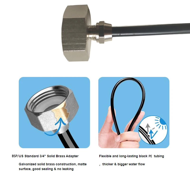 Длина трубки: 20 метровЦвет: черный и синийВнутренний слой: 1/4 ''фляга из пэ труба на солнечных батареях (внешний Диаметр: 6,5 мм; Внутренний Диаметр: 4 мм)Насадка: 0,4 мм отверстие для быстрого монтажа сопла3-полосная Тройник Разъем: 6,5 мм Внутренние Диаметр; Заглушка на структурыСоединитель смесителя: Внутренний диаметр: 25 мм; Внутренняя резьба