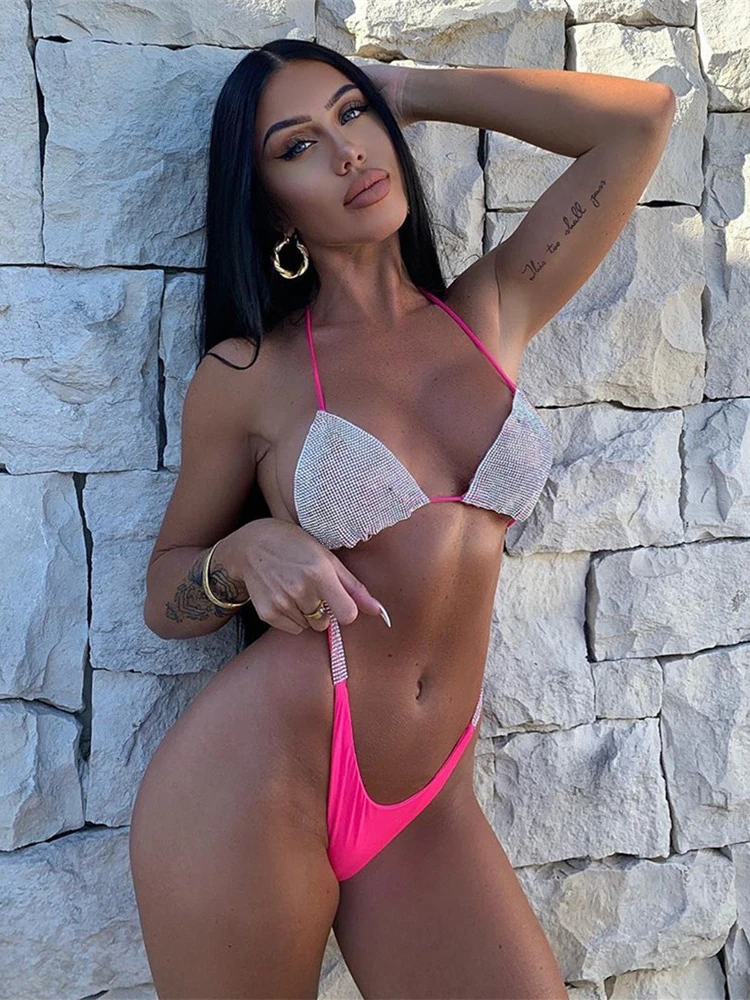 Взрывные однотонные бикини со стразами, Лидер продаж, Раздельный купальник, женские комплекты из 2 предметов, сексуальные мини-бразильские бикини, стринги, бикини