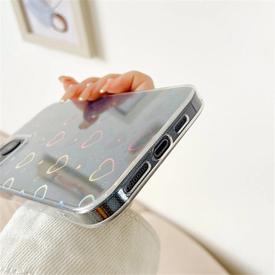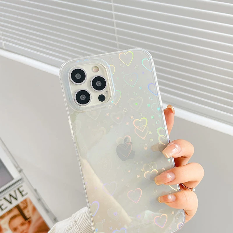 Голографический чехол с милым сердцем для телефона Iphone 11 12 13 ...