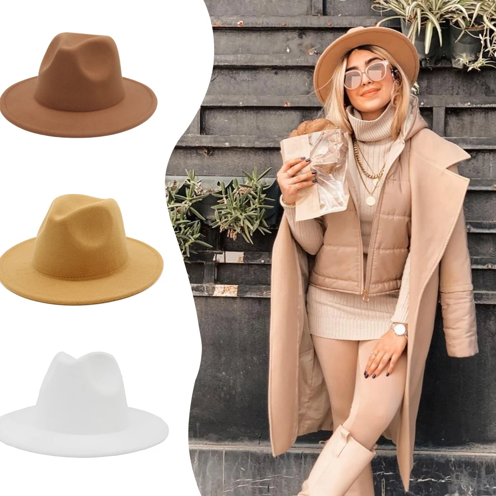 Модная женская фетровая шляпа с широкими полями, винтажные ковбойские шляпы, джазовая шляпа, однотонная теплая церковная женская шляпа с плоскими полями, новинка 2022