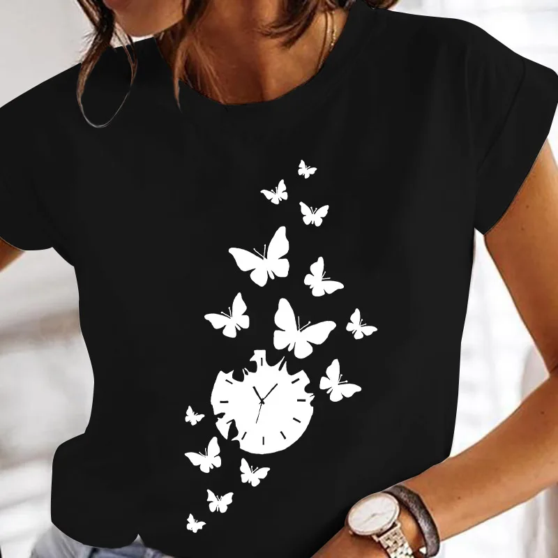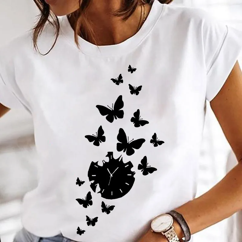 Футболка женская с принтом бабочек и графическим принтом, милая Пов...