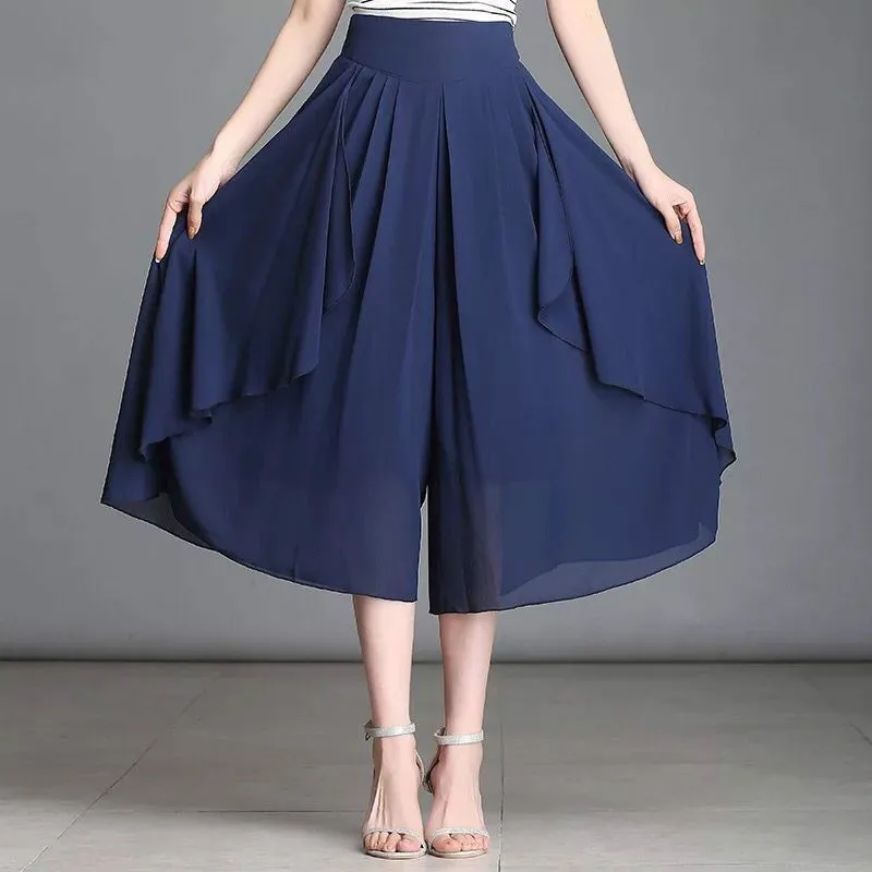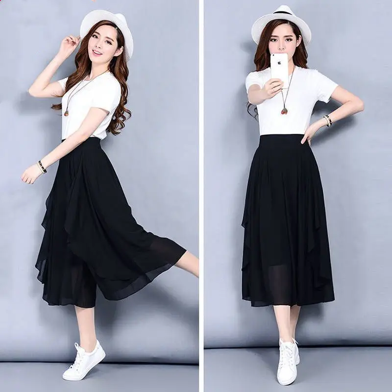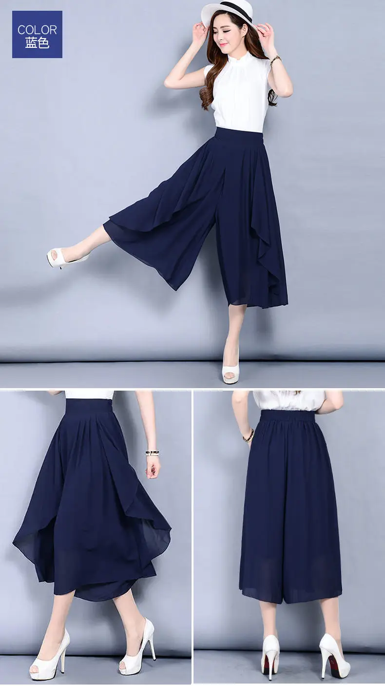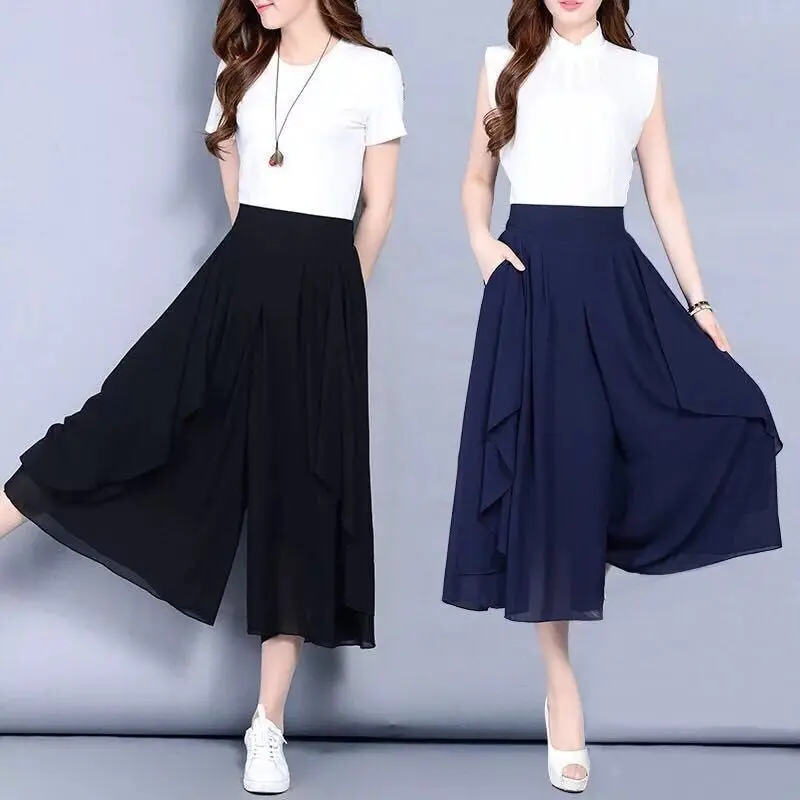 Брюки-Капри женские шифоновые с широкими штанинами, свободные штаны, уличная одежда, Прямая поставка, лето
