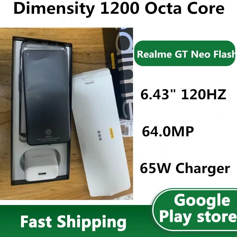 Оригинальный смартфон Realme GT Neo Flash Edition 5G 6,43 "Super AMOLED 120HZ Dimensity 1200 Fingerprint 65W Charger 64.0MP