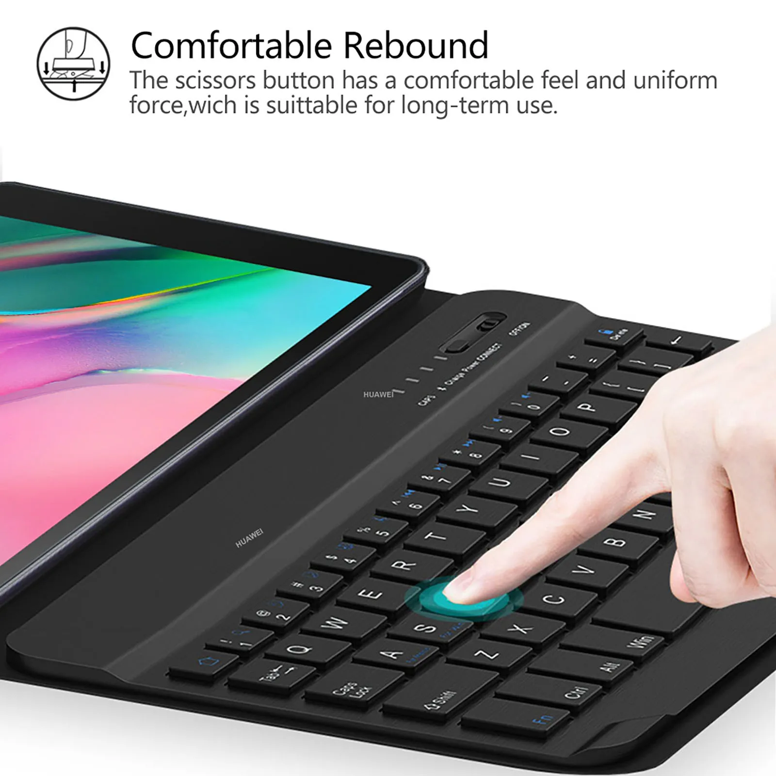 В Клавиатура беспроводного подключения к планшету, который может быть использован внутри Чехол или отдельно. Съемная клавиатура. Высококачественная и долговечная клавиатура, механизм гарантирует приятное и Опыт набора текста без усталости. Стильный Тонкий дизайн. Мягкий Подкладка из микрофибры защищает ваш экран и обеспечивает чистоту вашего монитора. Идеально подходит Подходит, доступ ко всем функциям, не снимая чехол.Спецификация: