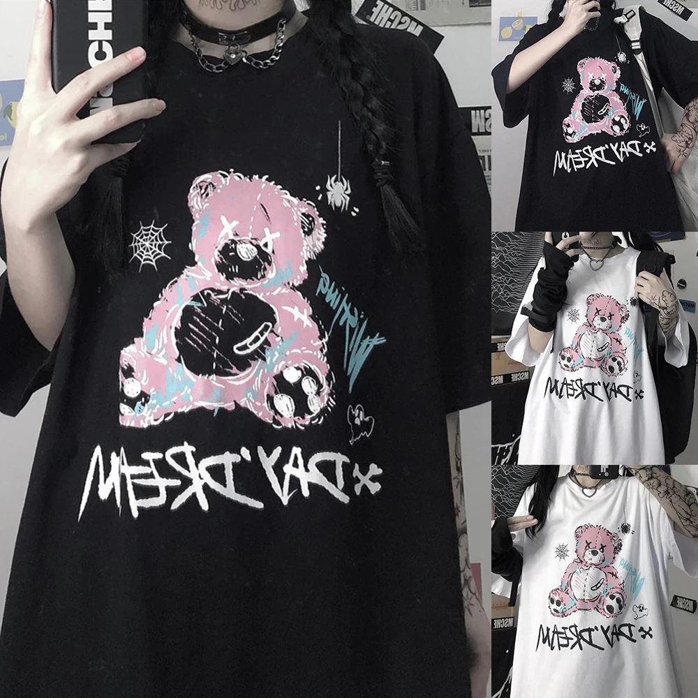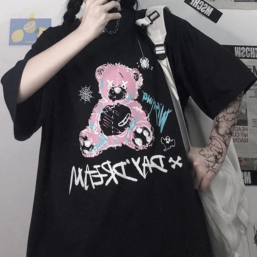 Футболка женская оверсайз с рисунком маленького медведя, Готическая...