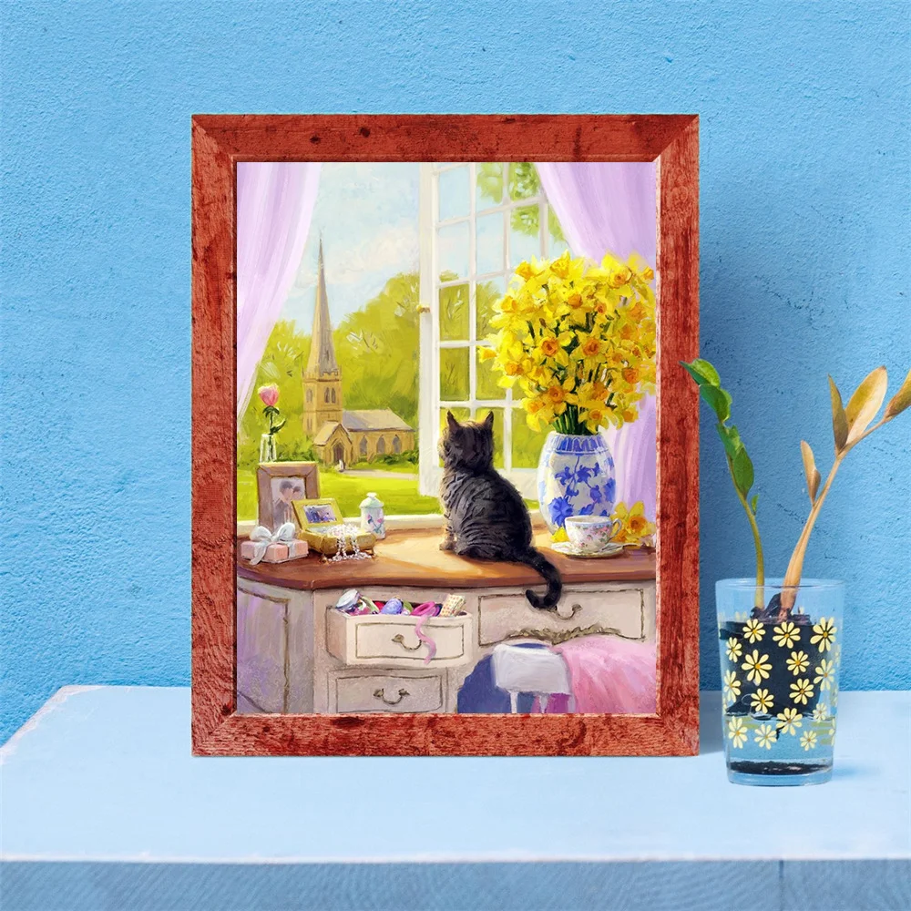 Алмазная вышивка Huacan полный комплект Кот Алмазная мозаика картина на окно животные модульные картины украшение для дома