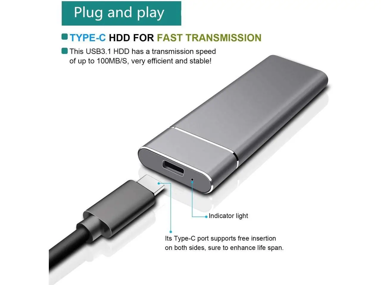 Внешний твердотельный накопитель SSD, 2 ТБ ГБ500 Гб1 ТБ, TYPE-C дюйма