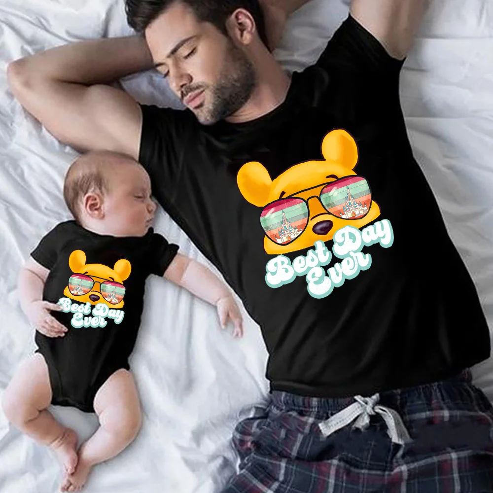 Детская одежда черная с коротким рукавом Винни-Пух с солнцезащитными очками лучший день с принтом Летние Удобные модные Универсальные футболки