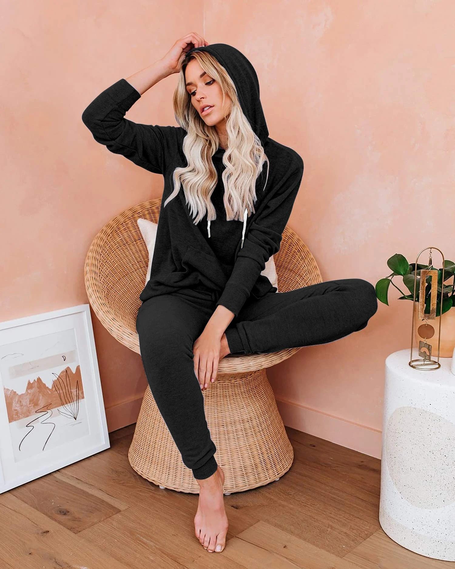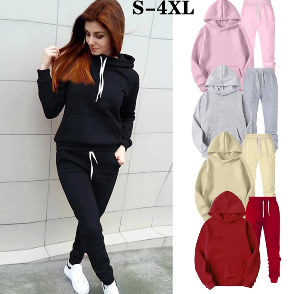 Женский спортивный костюм, повседневный однотонный костюм из двух предметов, Женский комплект с толстовкой и брюками, женский спортивный комплект с толстовкой, 2022