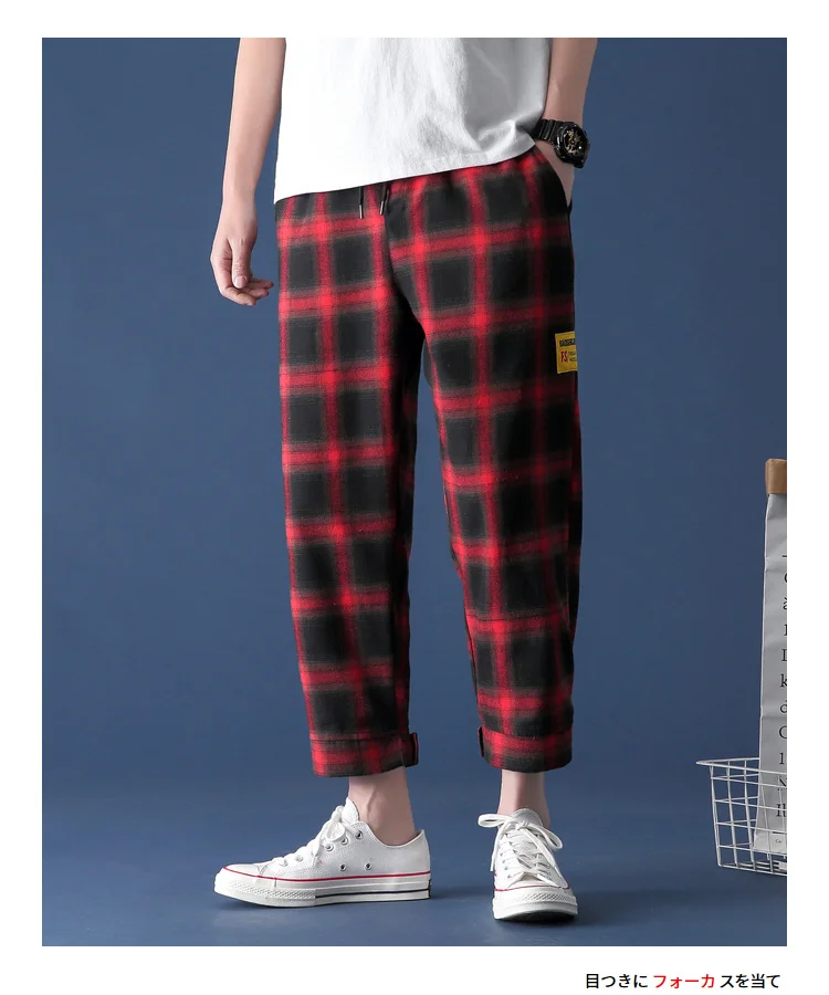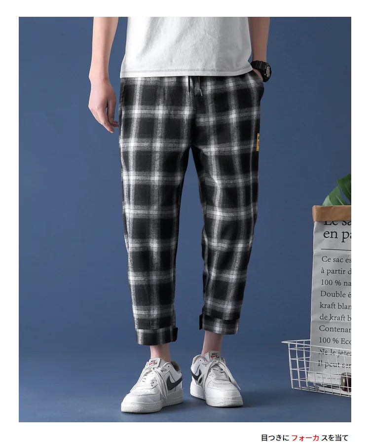 Штаны для бега мужские в клетку, летние, комфортные брюки, Японская...