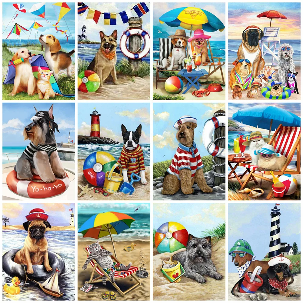Алмазная живопись HUACAN с изображением собаки 5D, Алмазная мозаика сделай сам, Приморская вышивка, квадратные наборы для вышивки, подарок ручной работы