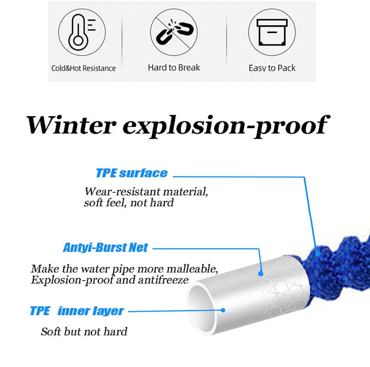 Описание продукта:Название продукта: садовый шлангМатериал: шланг: утолщенная трехслойная внутренняя трубка из ТПЭ + алюминиевое соединение + полиэфирная плетеная втулкаПистолет: алюминиевый сплавПродукты включают в себя:Стиль 1:1 ВодопроводСтиль 2: 1 шт. водопроводной трубы + 1 шт. водяного пистолета + 2 шт. общей латунной арматурыВыдвижная Длина:17 футов = (5 м после впрыска воды), оригинальная Длина: 1,7 м25 футов = (7,5 м после впрыска воды), оригинальная Длина: 2,5 м50 футов = (15 м после впрыска воды), оригинальная Длина: 5 м75 футов = (22,5 м после впрыска воды), оригинальная длина: 7,5 м100 футов = (30 м после впрыска воды), оригинальная Длина: 10 м125 футов = (37,5 м после впрыска воды), оригинальная Длина: 12,5 М150 футов = (45 м после впрыска воды), оригинальная Длина: 15 мДостижения:1: 5 м, 7,5 м, 15 м, 22,5 м, 30 м, 37,5 м, 45 м-это максимальная длина после впрыска воды