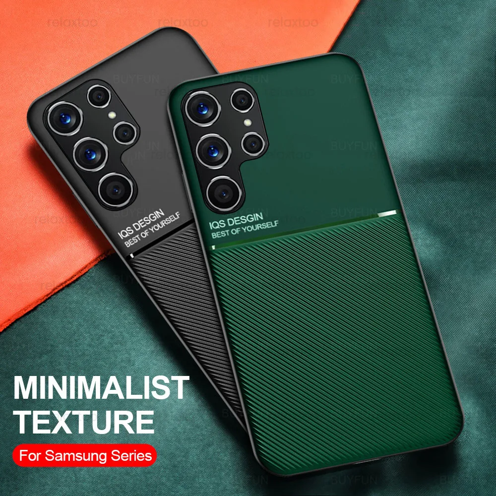 Автомобильный магнитный держатель, кожаный чехол для Samsung Galaxy S 22 S22 Ultra Pro Plus S22Ultra, чехол из ТПУ, мягкая рамка, защитный чехол S22 +