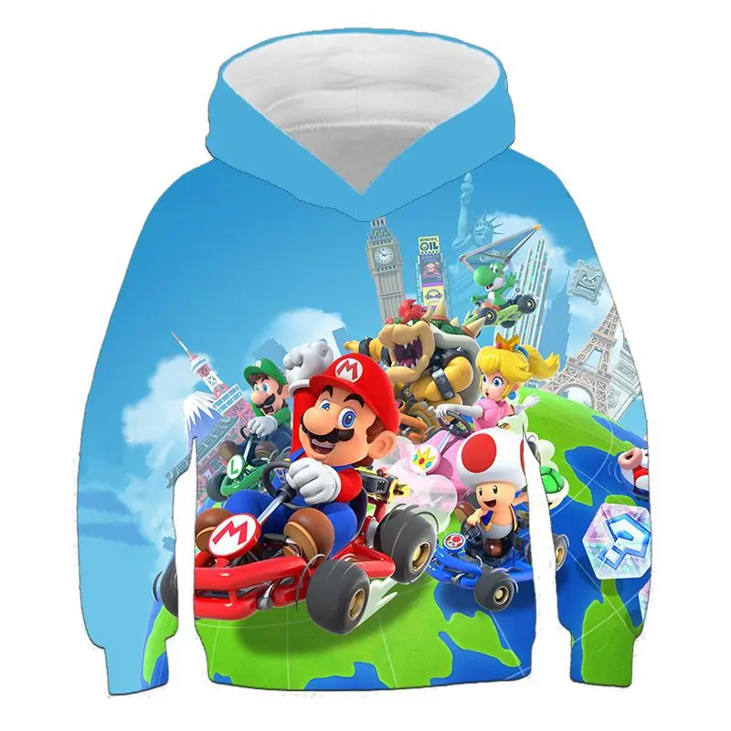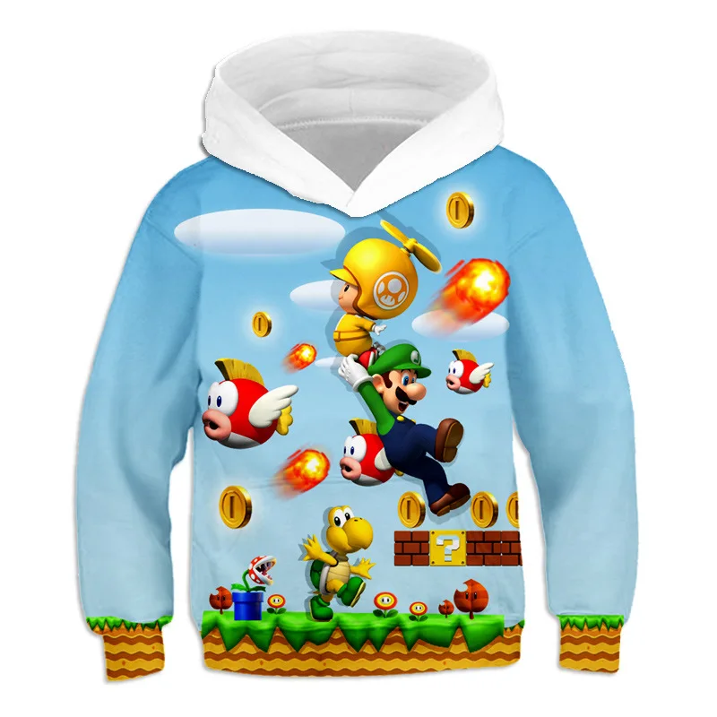 Свитшот аниме Супер Марио, пуловер с длинным рукавом, весенние толстовки, детская одежда, мультяшная детская одежда, популярные игры