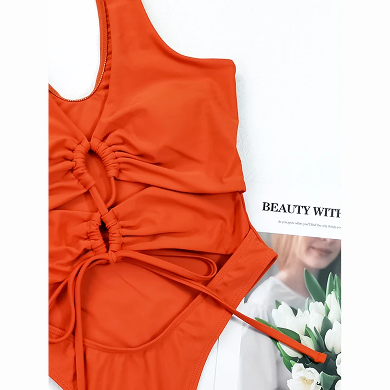 Бандажный сексуальный женский слитный купальник 2022, однотонный ку...