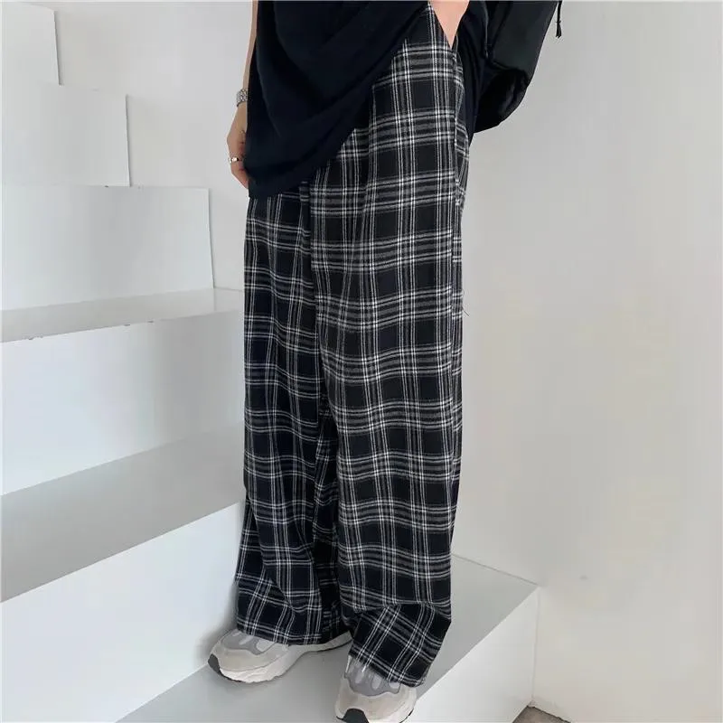 Брюки мужские, летниезимние, в клетку, прямые, в стиле Харадзюку, в...
