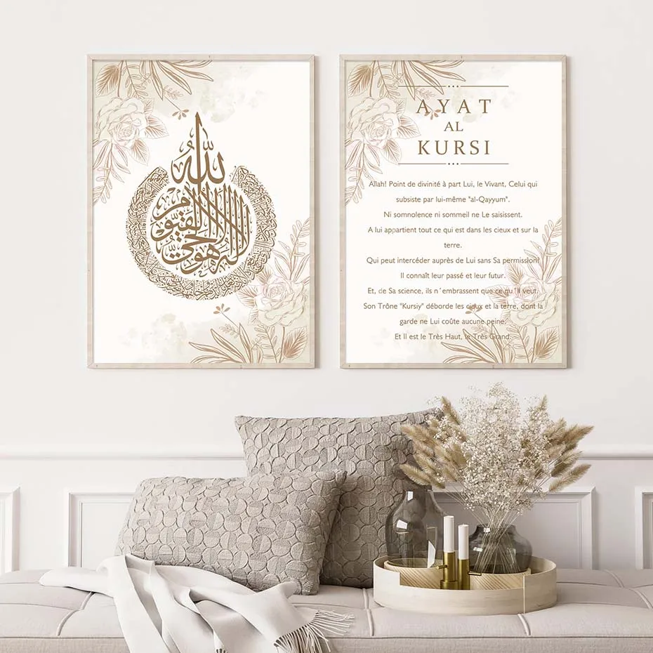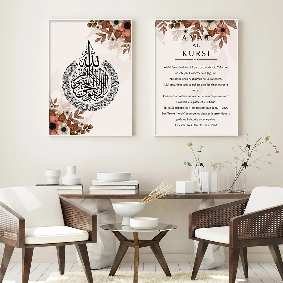 Исламская каллиграфия аят аль-КУРСИ Коран французский цветочный плакат и печать настенный художественный декор живопись детская комната Домашний декор