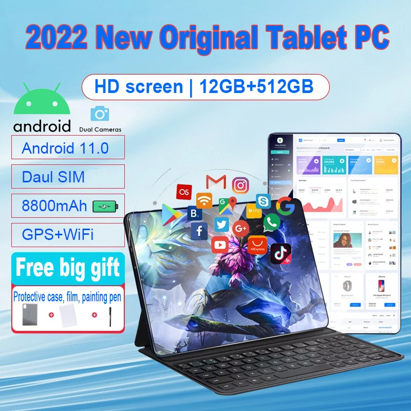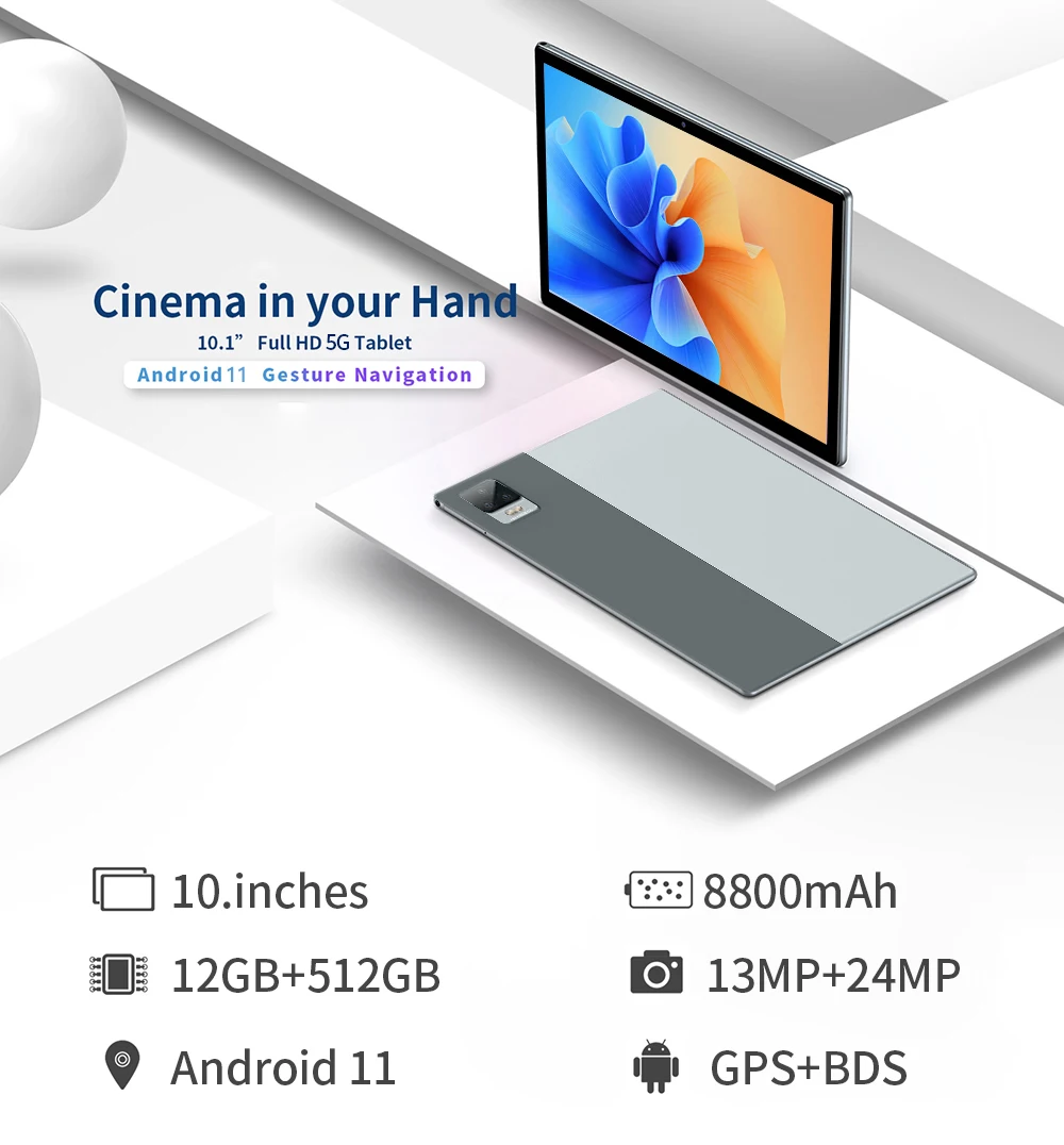 Планшет на Android 11, 10 дюймов, 12 Гб + 2022 ГБ, 512 мАч