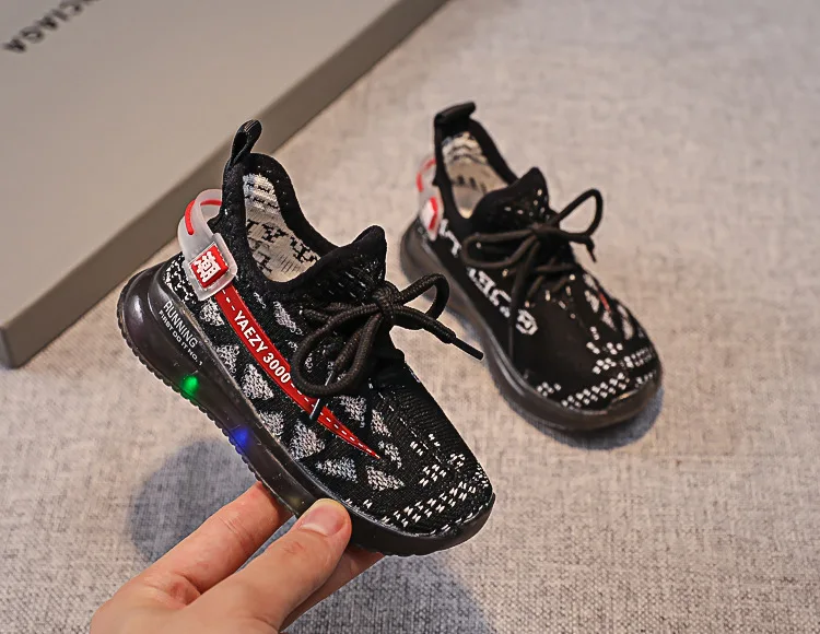 Кроссовки Детские светящиеся, дышащие Нескользящие, спортивная обувь, для мальчиков, размеры 21-30