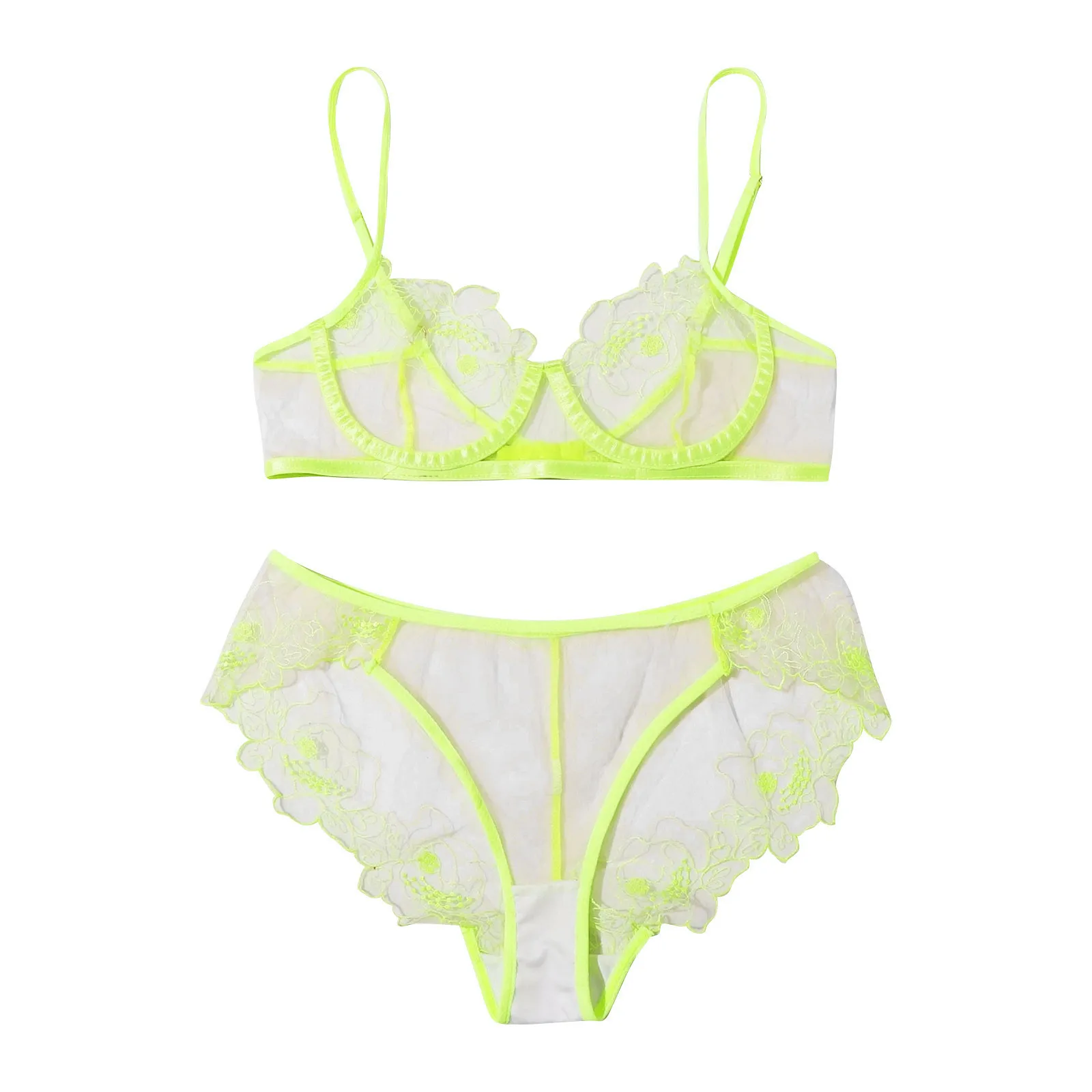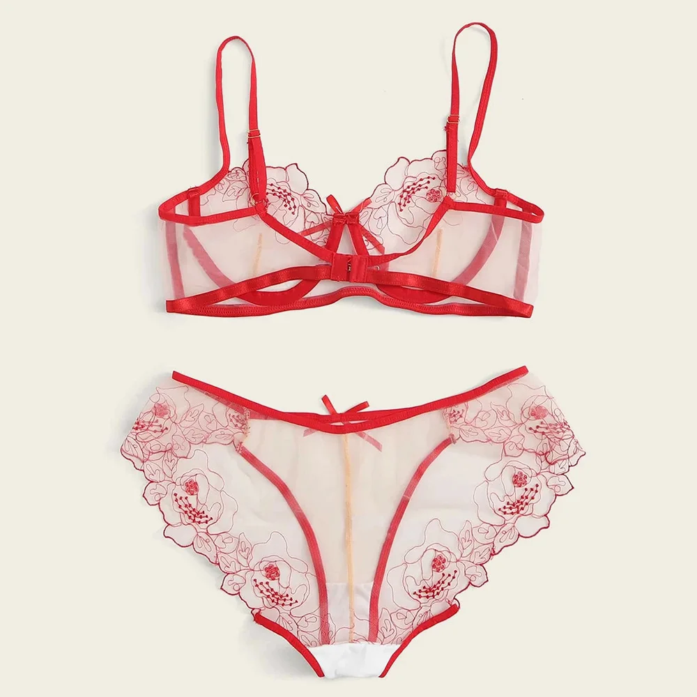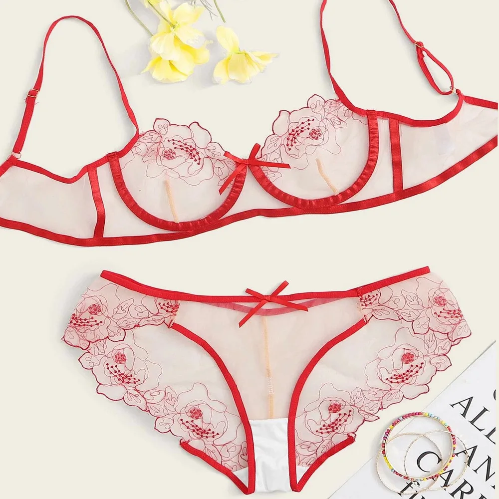 Комплект женского кружевного нижнего белья, с вышивкой и цветами