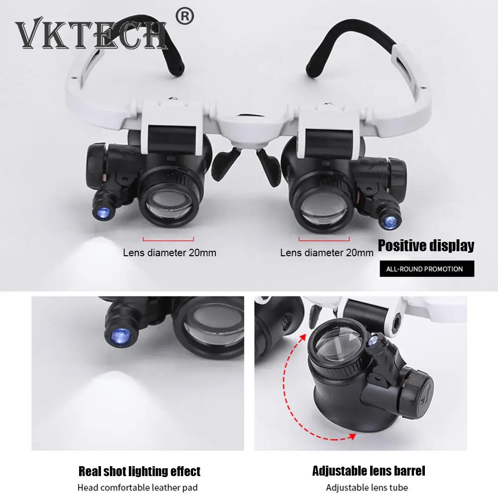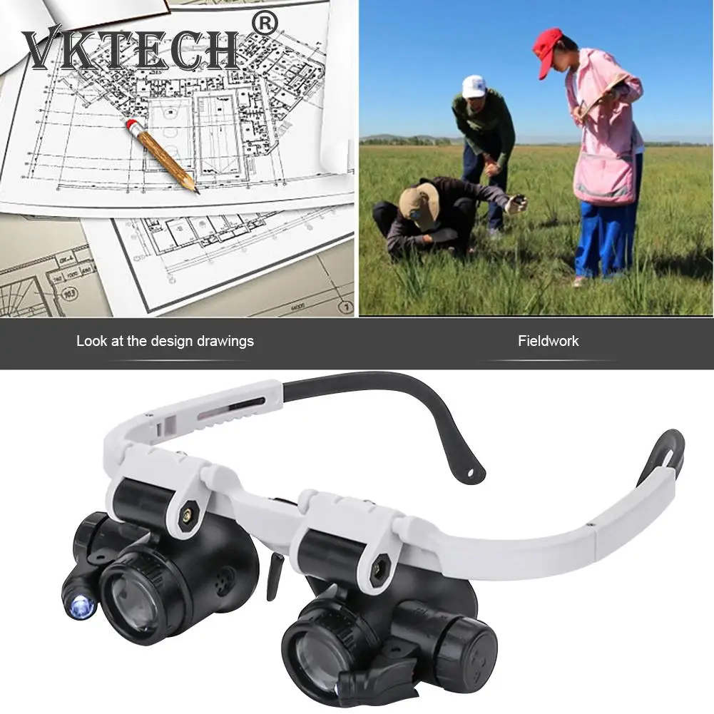 Телескопическая лупа очки лупы с 2 светодиодный светильник Портативный 8X/15X/23X объектив наблюдения увеличительное очки для чтения Ювелиры Часовщик Ремонт носить