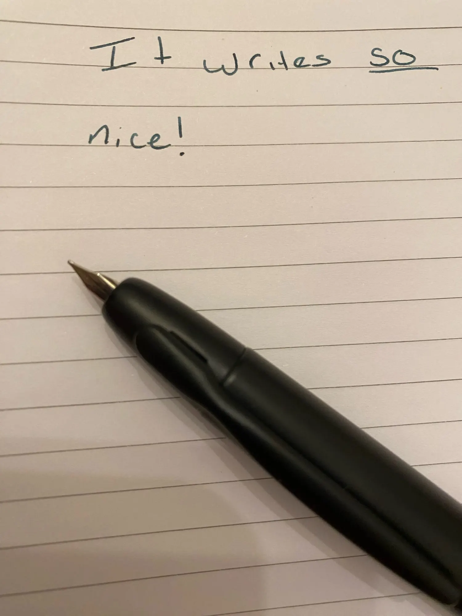 Эта ручка более чем великолепна! Он написал красиво из коробки, но после некоторого сглаживания с блоком лака для ногтей, дополнительный тонкий НИБ теперь больше похож на стекловидный-Гладкий штраф. Правильно мокрый, но не фонтанированый. Примерно так. Я абсолютно люблю действие щелчка и всю концепцию выдвижного пера. У всех моих других ручек есть колпачки, и я вроде как никогда не знаю, куда положить те, которые не публикуют. Нажатие на кнопку намного практичнее.