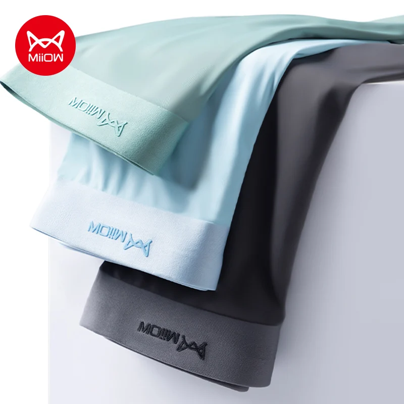 MiiOW, 3 шт., Бесшовное мужское нижнее белье-боксеры, ледяное шелко...