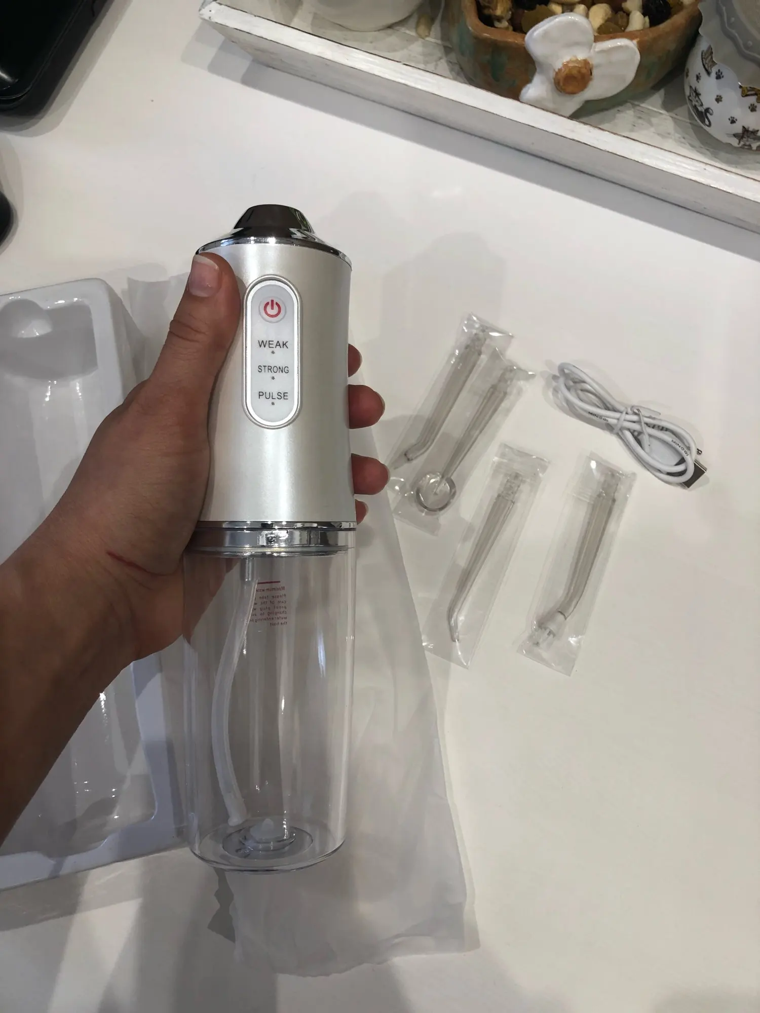 Очень быстрая доставка курьером до двери. Ирригатор, как на фото. Все работает. 3 режима, переключаются долгим нажатием на кнопку вкл. Струя мощная. Инструкция на анг. Но там читать не чего. Брызги во все стороны. Хз как им пользуются). Мужу понравилось.