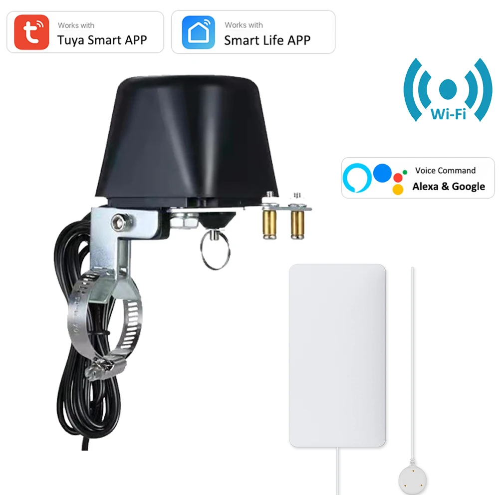 Умный регулятор утечки воды Tuya Smart Alexa Google WiFi, Автоматическое включениевыключение, с беспроводным детектором утечки воды, с приложением Smart Life