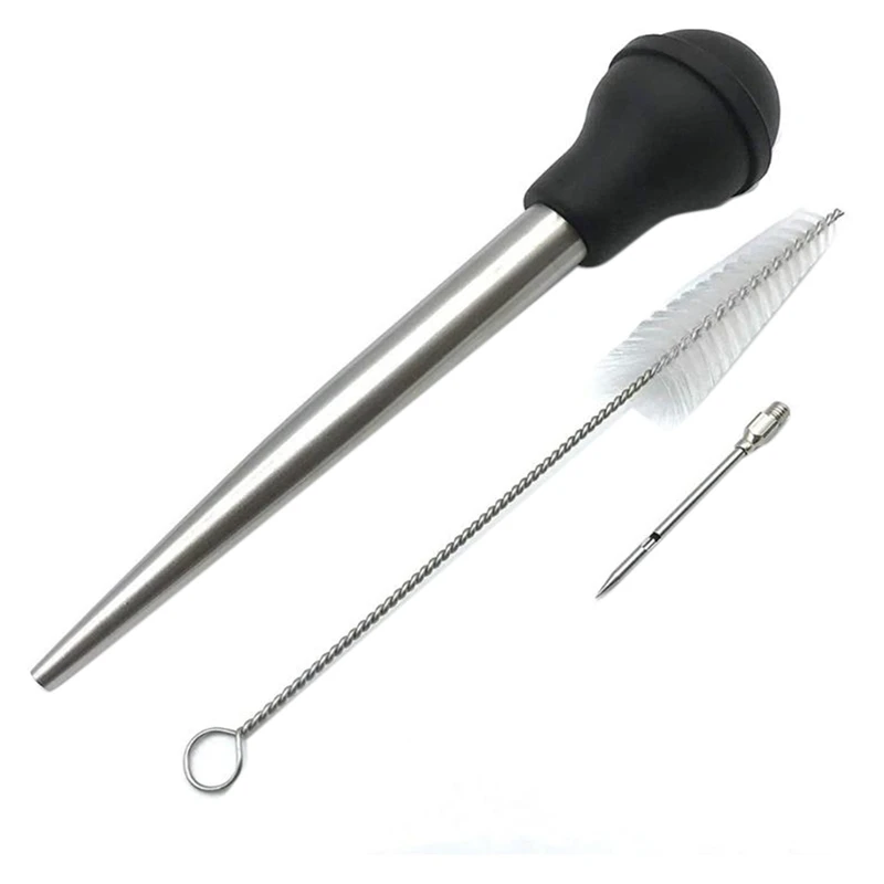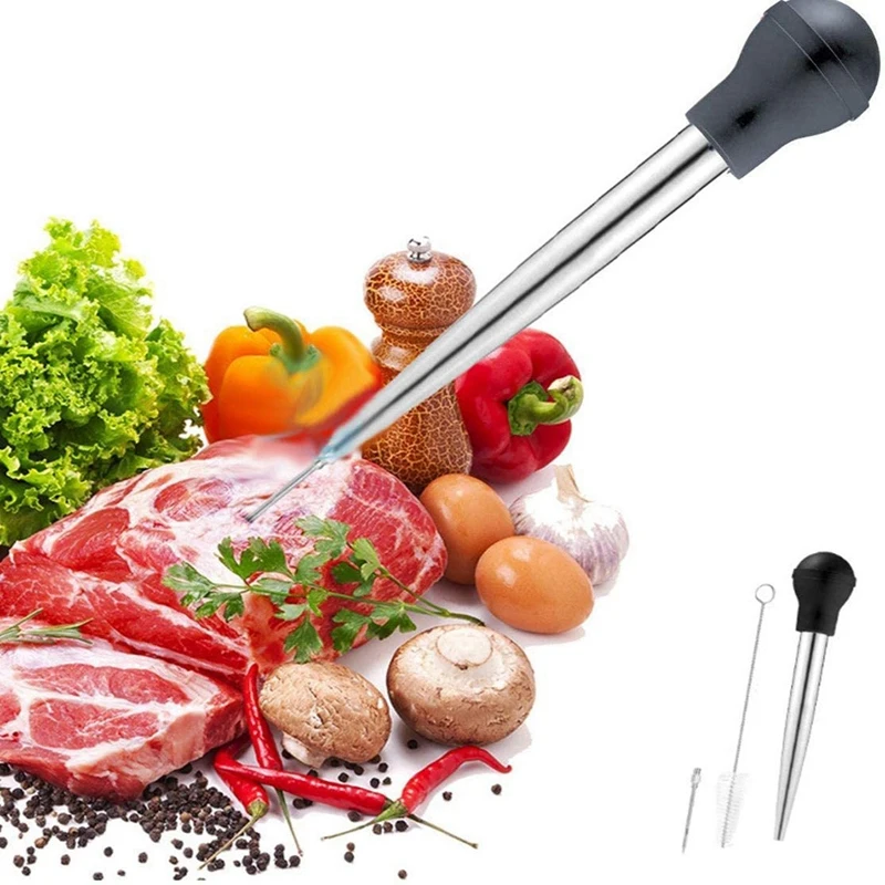 Шприц Baster для готовки, шприцы Baster с чистящей щеткой и шприцы для маринада, черные шприцы из нержавеющей стали для индейки