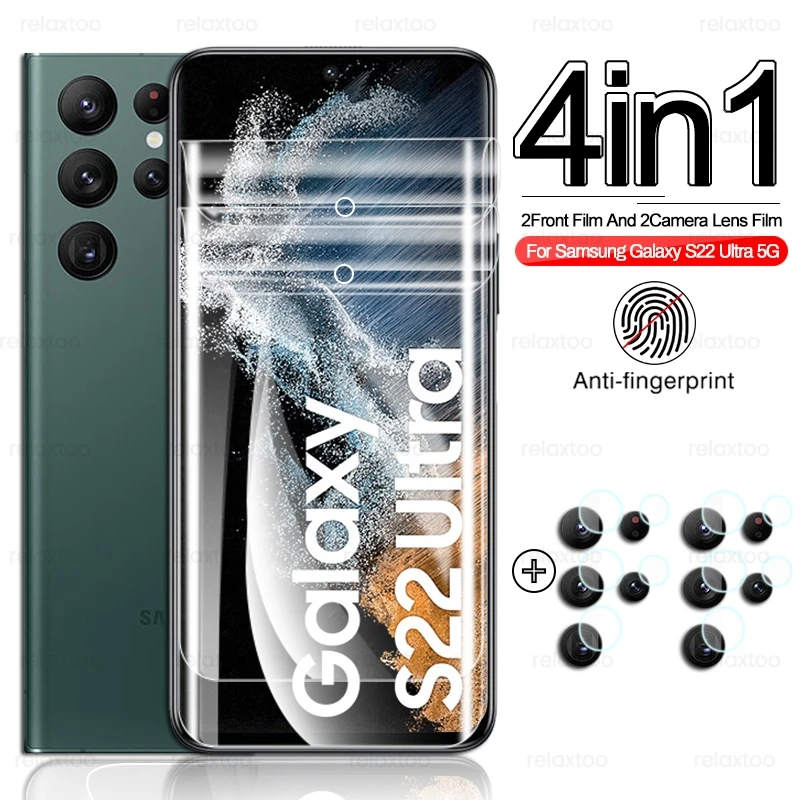 4-in-1 999D Curved Hydrogel Film Screen Protector For Samsung Galaxy S 22 S22 Ultra Plus S22Ultra S22+ 5G 2022 Camera Lens Glass