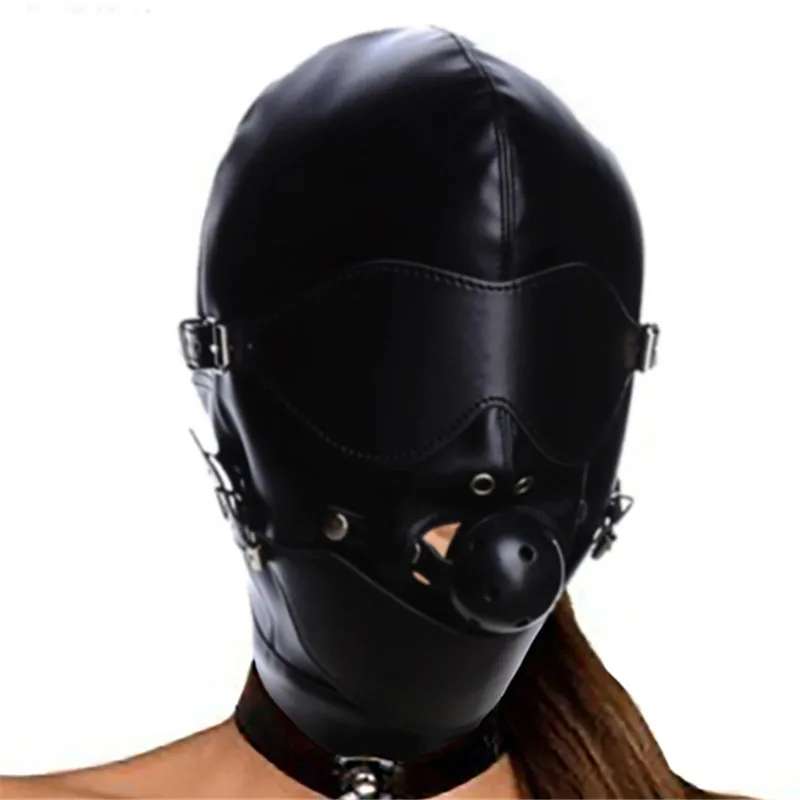 БДСМ бондаж кожаный подвесной капюшон с кляпом шар эротический ведомый сенсорный лишение Фетиш капюшон для глаз маска для взрослых