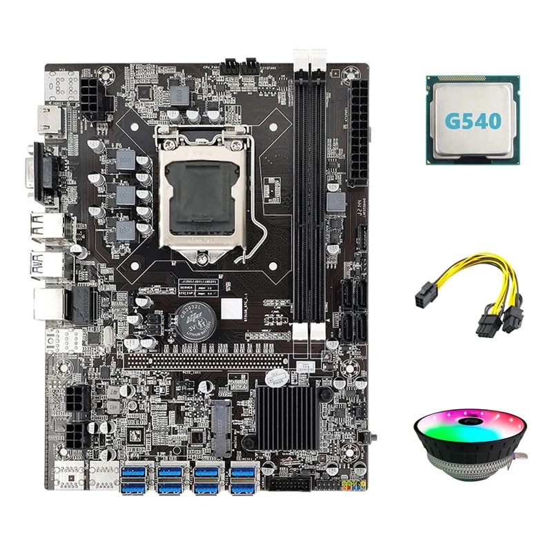 Материнская плата B75 ETH 8XPCIE к USB + G540 CPU + RGB вентилятор + 6Pin к двойному 8Pin кабелю LGA1155 B75 BTC материнская плата для майнинга