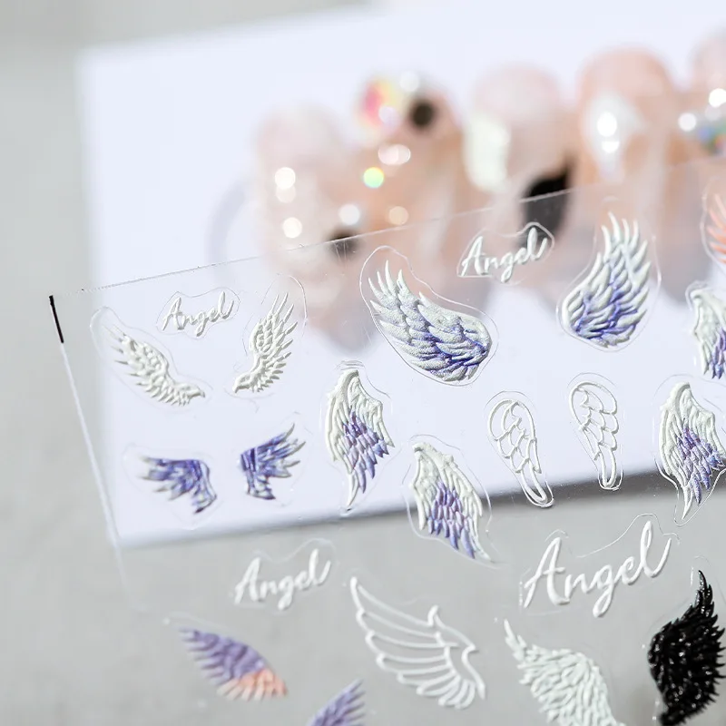 Романтические наклейки с бантом и крыльями ангела 5D, наклейки для дизайна ногтей, клейкие обертки, декор для ногтей, наклейки для ногтей s Z0584