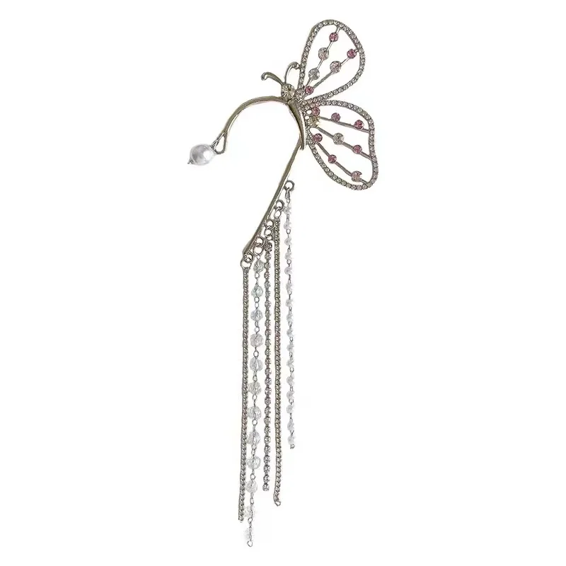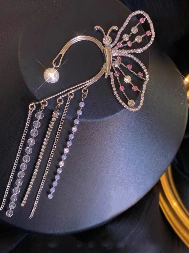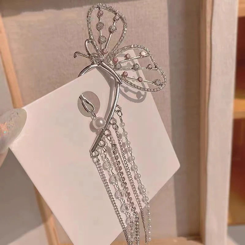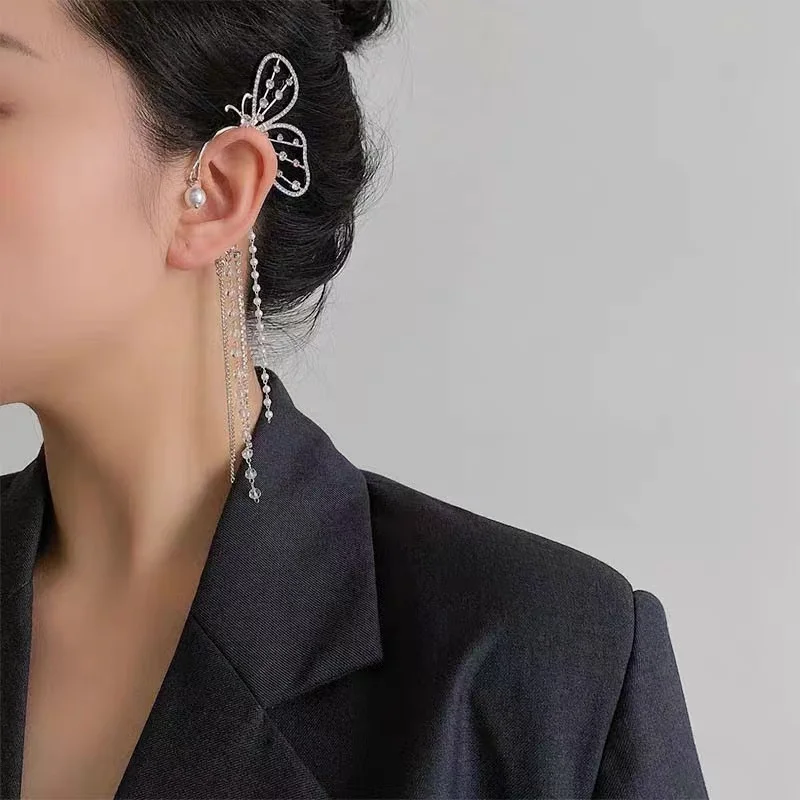 1 шт. модные серьги-клипсы с хрустальными бабочками, жемчужные буси...