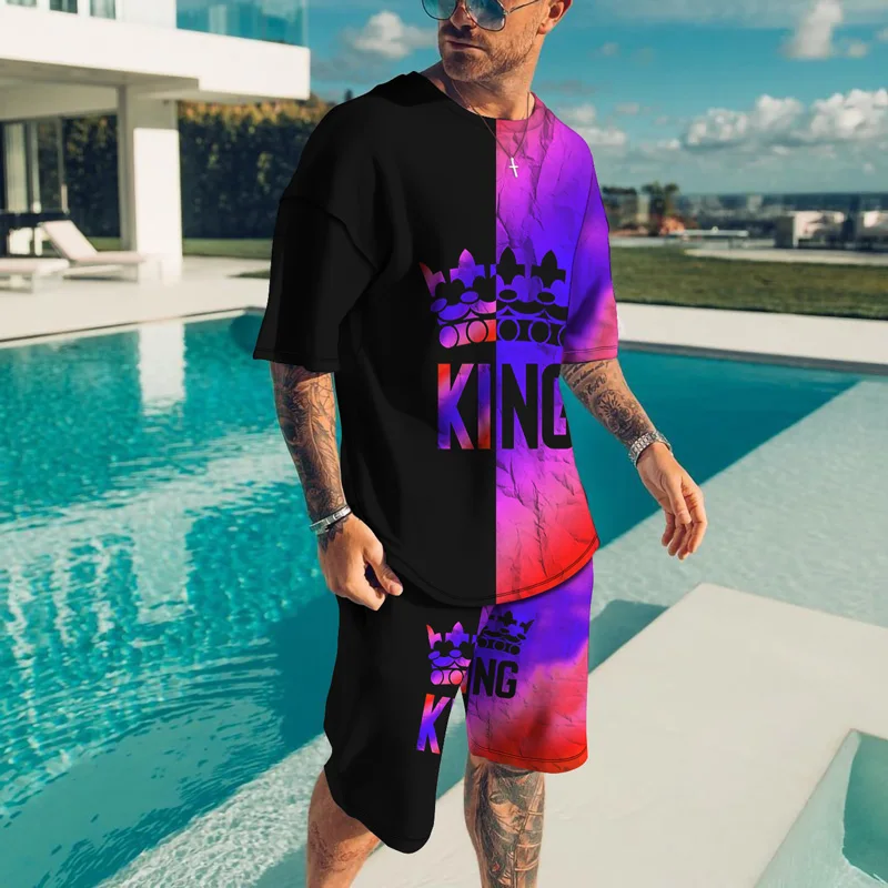 Костюм спортивный мужской оверсайз, футболка и шорты с 3d принтом, модная уличная одежда, лето