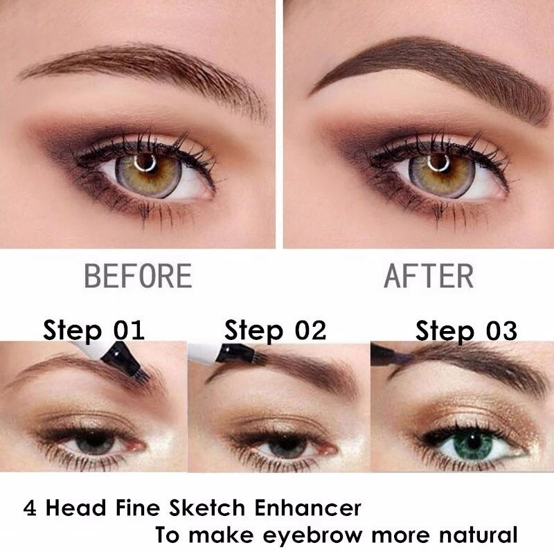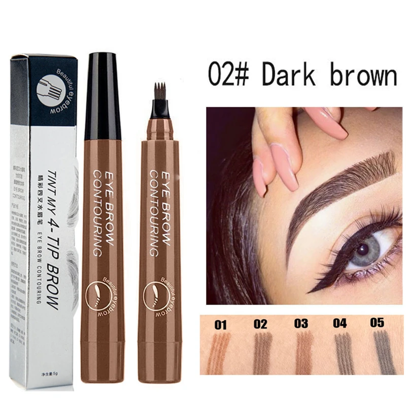 Тату для бровей 3D жидкая чернильная ручка Водонепроницаемая 4 вилка карандаш для бровей глаз макияж женский 5 натуральных цветов в наличии