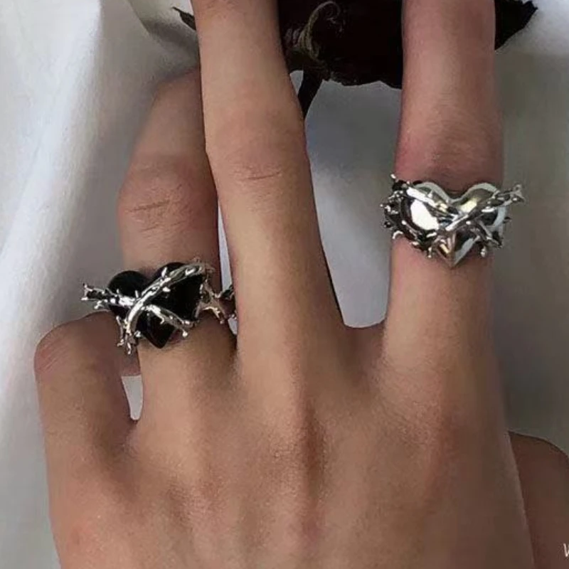 Стильные готические серебряные открытые кольца в форме сердца Spyan...