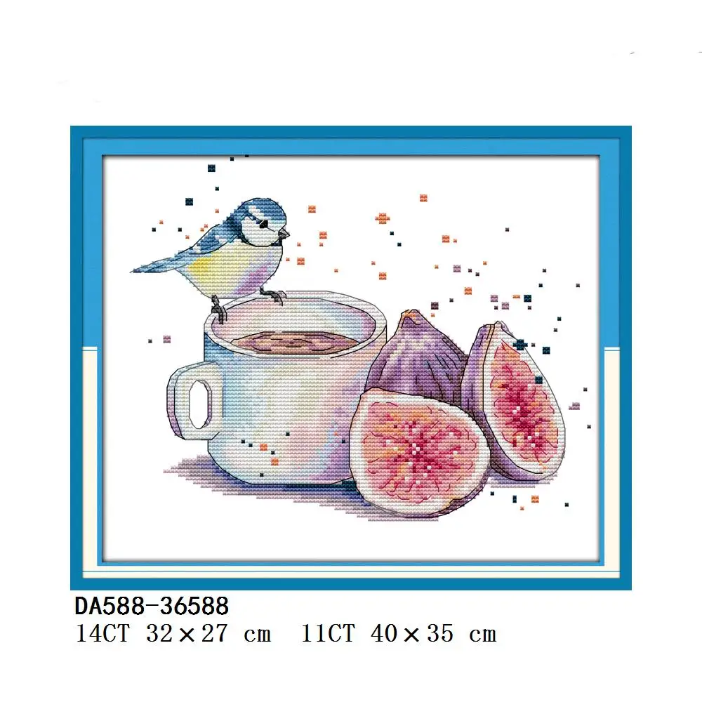 Вышивка крестиком Joy Sunday с птицей и фигой черникой DA588 DA589, Набор для вышивки крестиком в виде птиц и фруктов