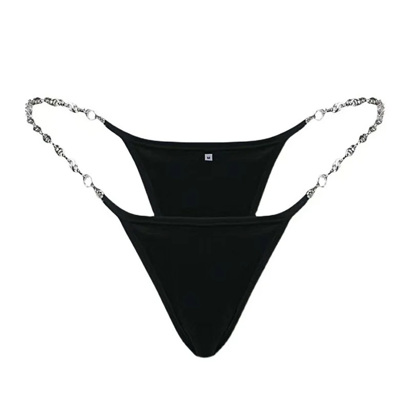 Соблазнительные однотонные брюки с V-образным вырезом и цепочкой, модное черное нижнее белье, соблазнительное женское соблазнительное нижнее белье с металлической цепочкой
