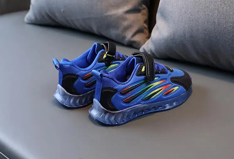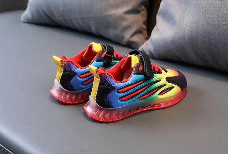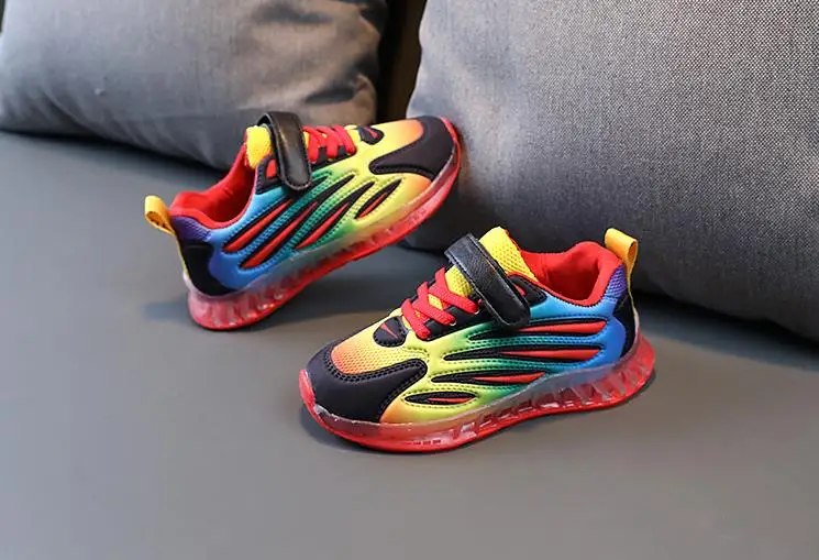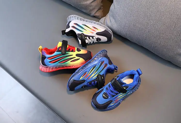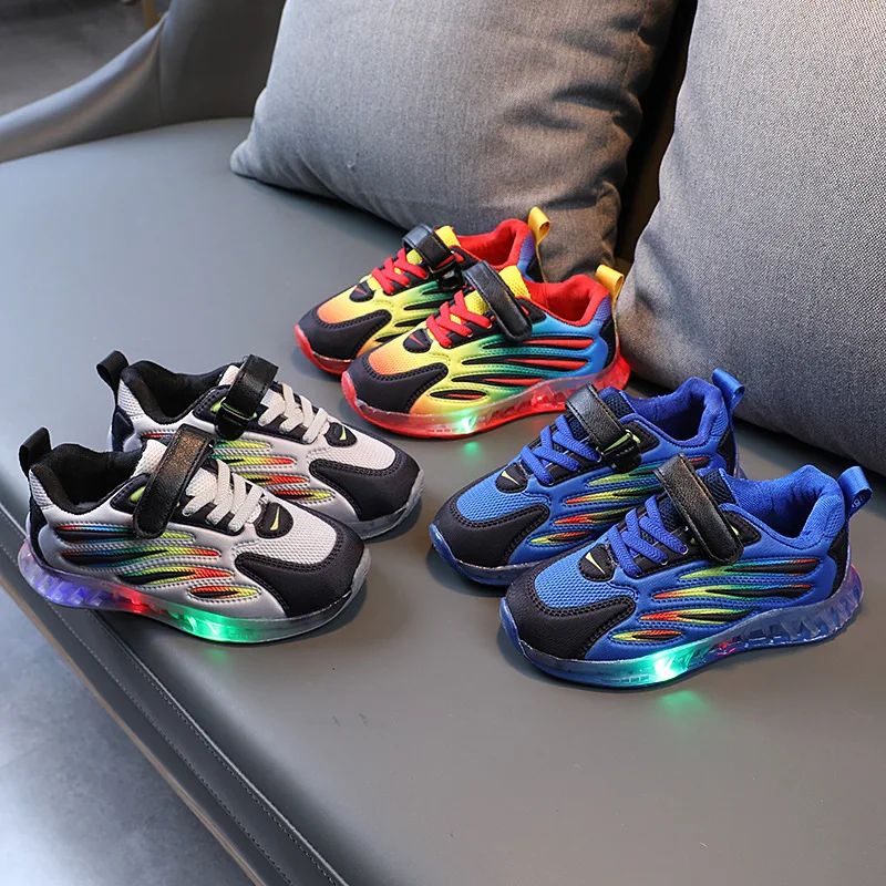 Детские кроссовки для мальчиков и девочек, осенние дышащие светящиеся кроссовки со светодиодной подсветкой и мягкой подошвой, 2021