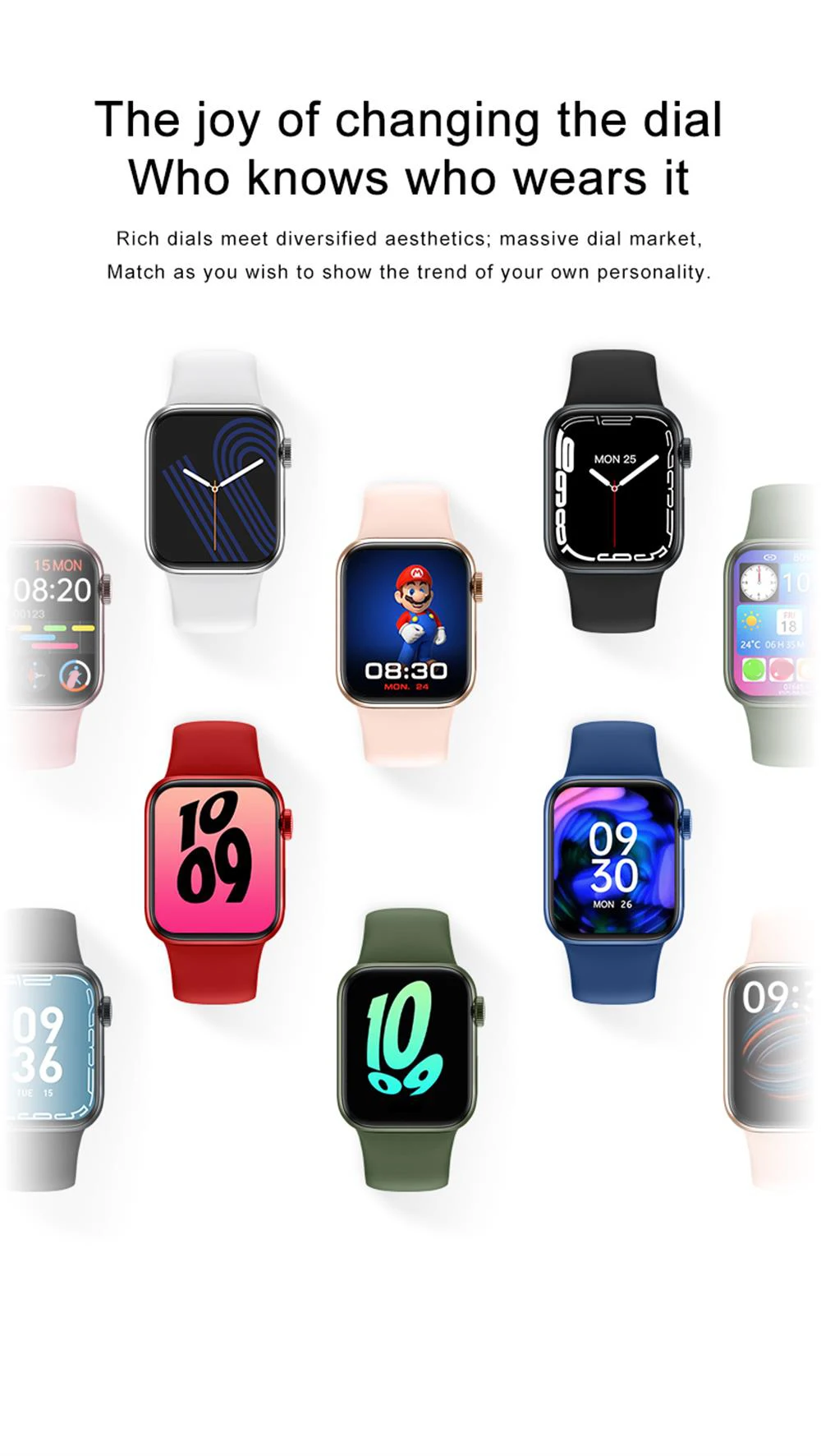 M7: Магнитная Зарядка, нет NFC, 1,8 дюйма Экран, 45 мм M7 Pro: Беспроводной зарядки, без NFC, 1,8 дюйма Экран, 45 мм M7 Pro Plus: Беспроводной зарядки, NFC, 1,8 дюйма Экран, 45 мм M7 мини: Беспроводной зарядки, без NFC, 1,57 дюйма Экран, 41 мм